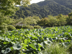 左手には、ハスの池があります。